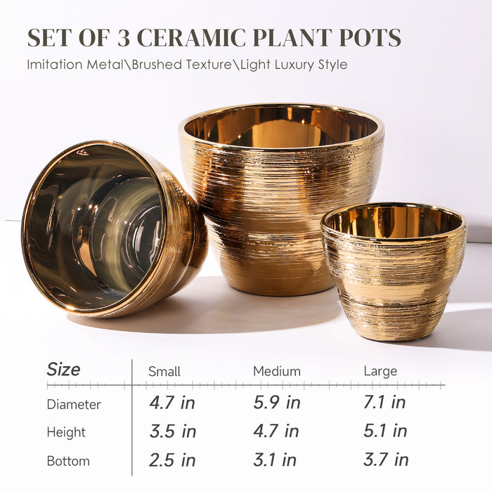 Jofamy Ceramic Plant Pots 7 1 5 9 4 7 Inch Brushed Gold Finish Planter Pots With Drainage Silicone Plugs Mesh Pads Flower Pots For Indoor Plants Ideal For Birthday Wedding
