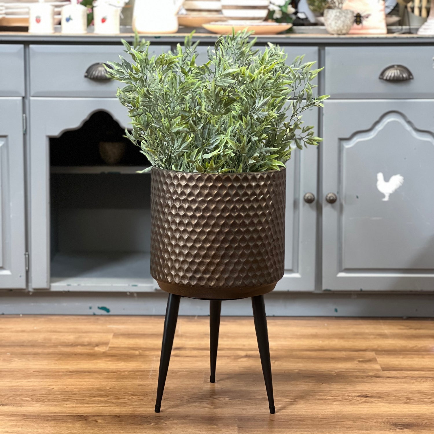 Gisela Graham Bronze Dimple Metal Indoor Planter On Legs In Excess Direct