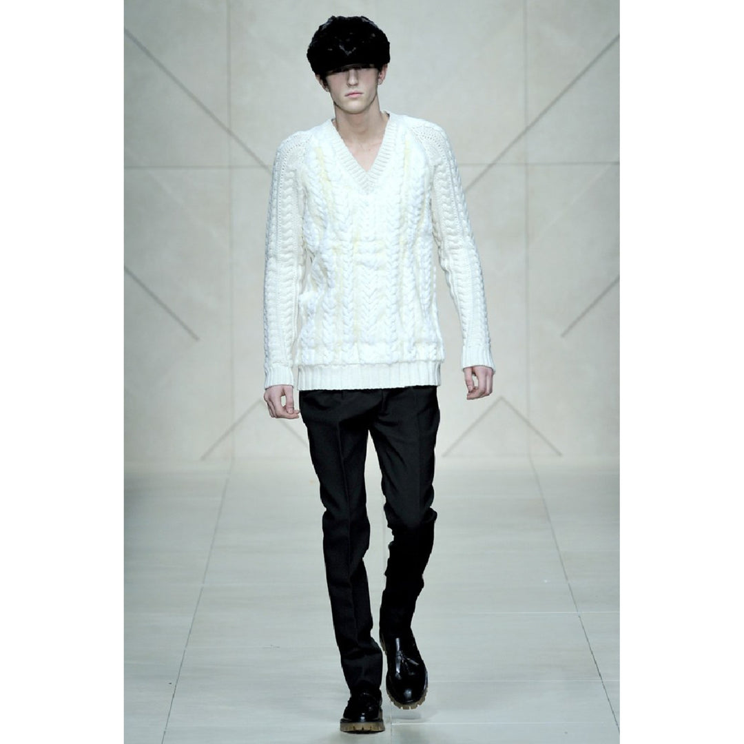 Burberry Prorsum Fall Winter 2011 Size Xl Cream Cable Knit Wool Cash Sui Generis Designer Consignment